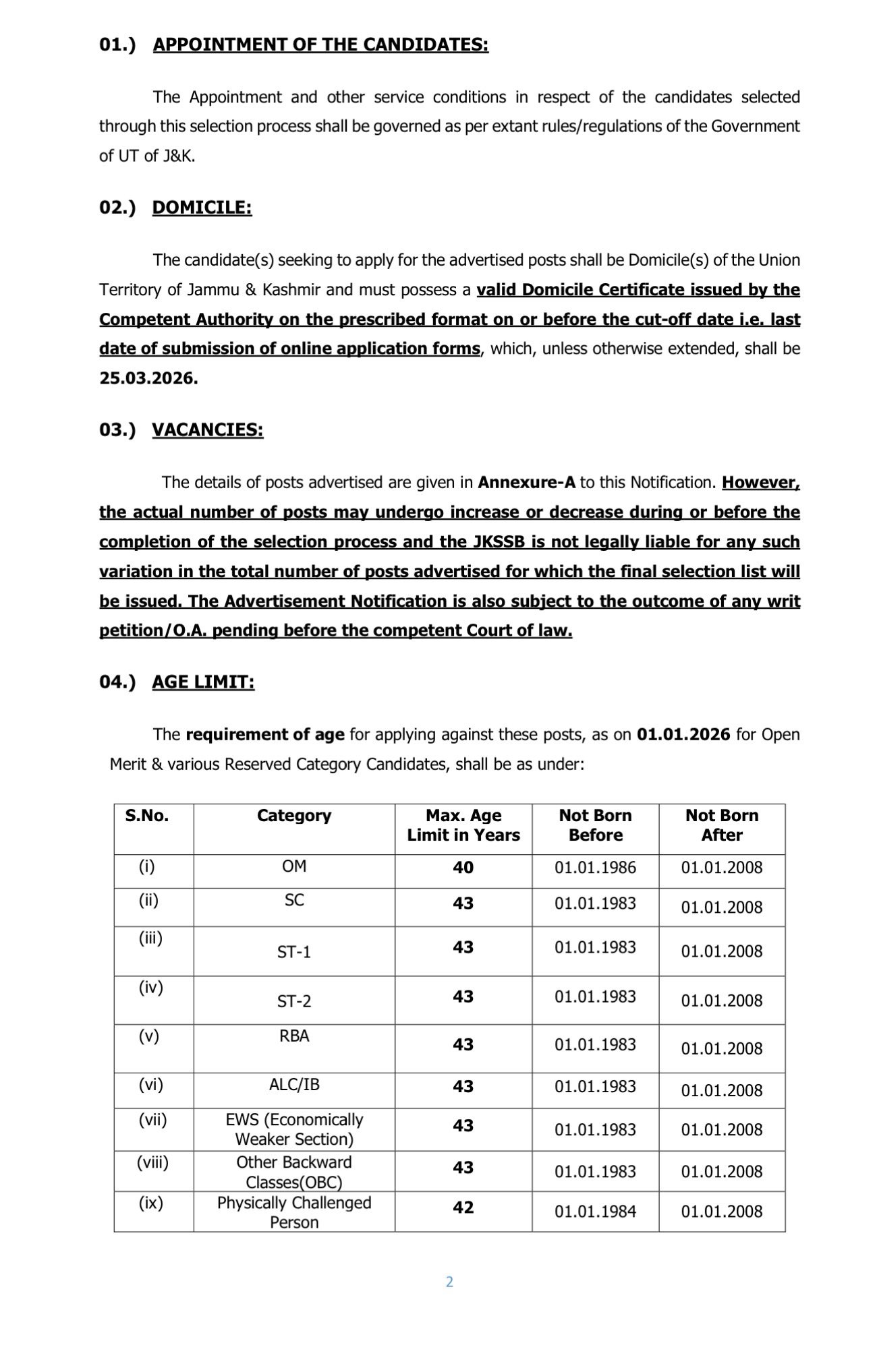 JKSSB Vacancy Details 2026