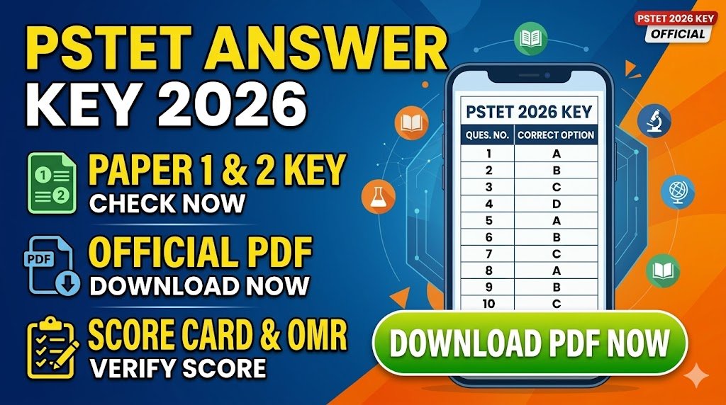 Candidates who appeared for the examination can download the PSTET Answer Key 2026 PDF for Paper 1 (ETT) and Paper 2 (Master Cadre) from the official website pstet2025.org starting March 16, 2026.