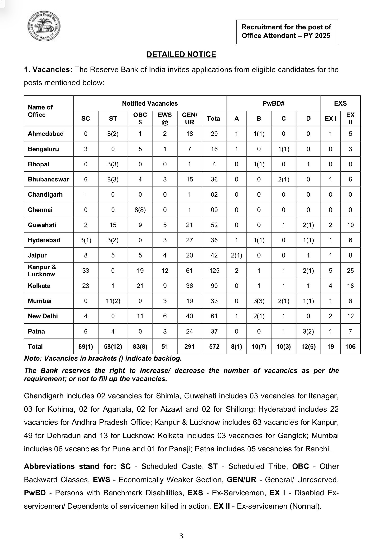 Reserve Bank of India (RBI) has invited online applications for 572 Office Attendant posts under Panel Year 2025. Selection will be conducted through an Online Examination followed by a Language Proficiency Test (LPT).