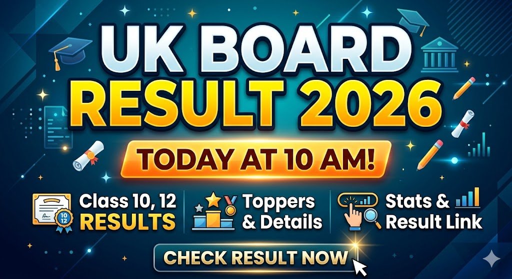 The Uttarakhand Board of School Education will declare the UK Board Result 2026 for Class 10 and Class 12 today (April 25) at 10 AM. Students who appeared in the exams can check their results online using their roll number.